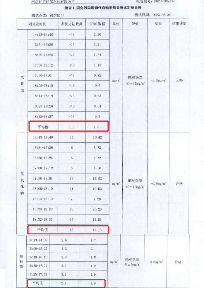 热华能源卧式循环流化床专利技术锅炉产品的环保指标同样卓越:SO₂平均值1.01 mg/m³、NOx平均值11.13mg/m³、颗粒物平均值1.9 mg/m³,各项污染物排放指标均远优于超低排放标准。