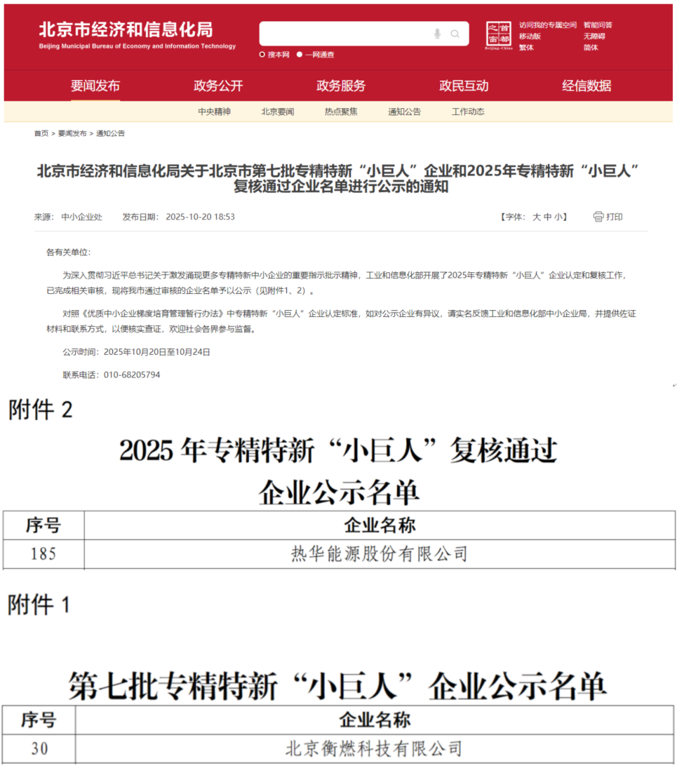 企业新闻 | 国家级认可!热华能源与北京衡燃科技双双荣获国家级专精特新“小巨人”