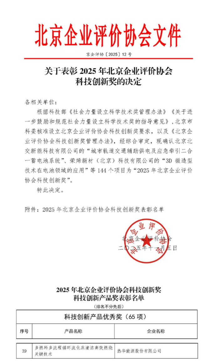 企业新闻 | 荣誉再加成!热华能源荣获2025年北京企业评价协会科技创新产品奖
